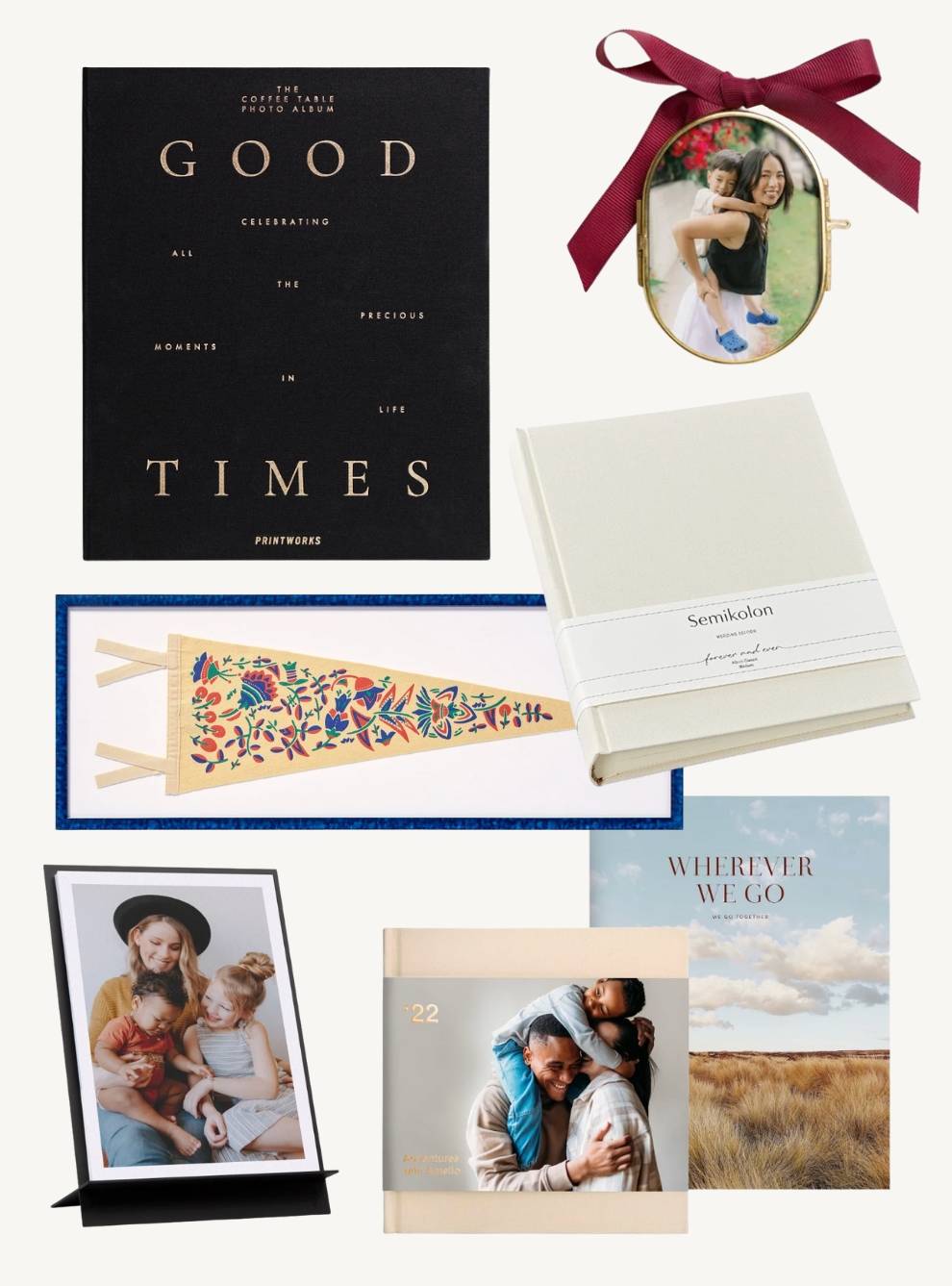 Think: design-forward photo albums, heirloom ornaments, and unique display options that make photos feel like decor.